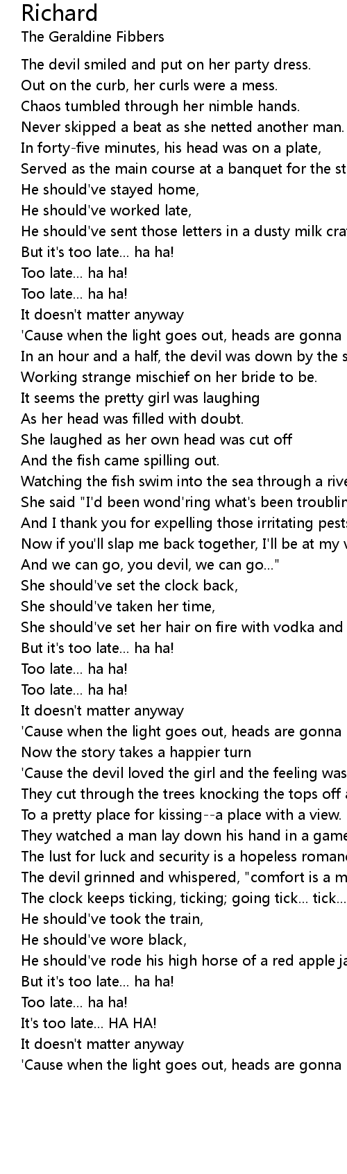 The clock keeps ticking, ticking; going tick... tick... tick... tick" |