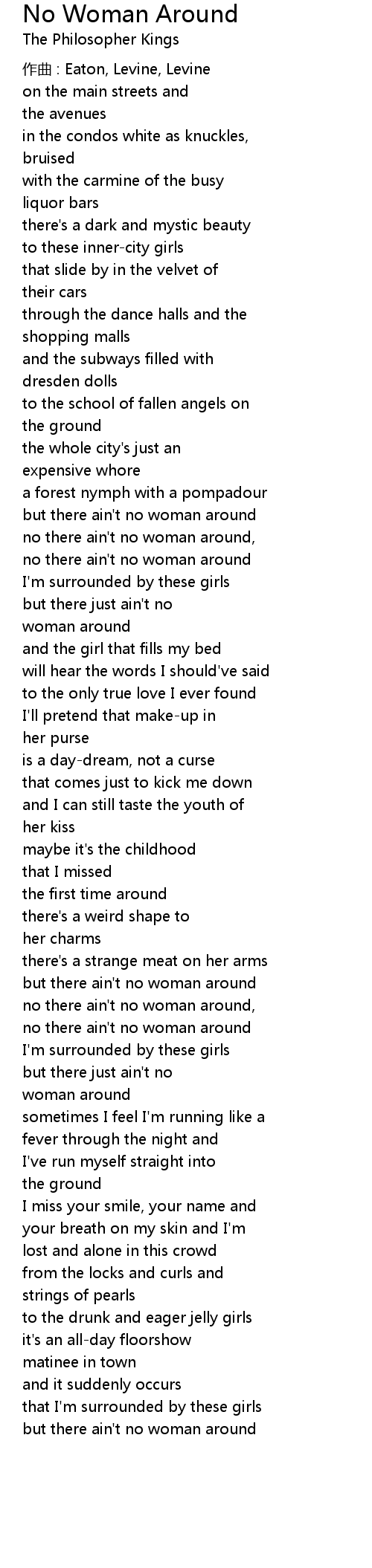 | but there ain' t no woman around | |