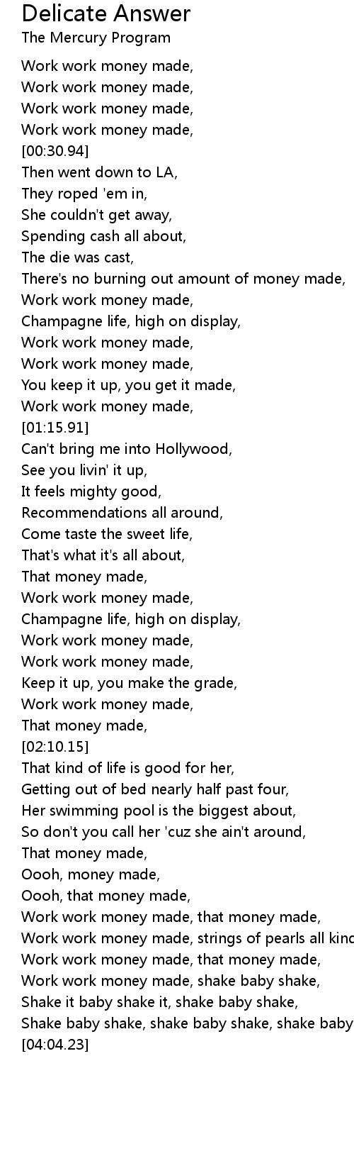 Work work money made, shake baby shake, |