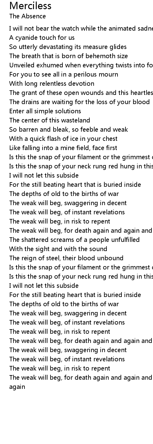 The weak will beg, for death again and again and again and again and again and again |