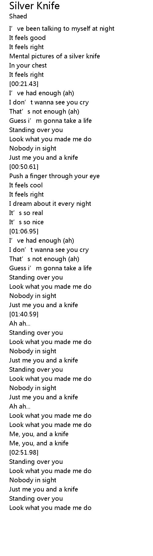 | [00:47.41] | Just me you and a knife |