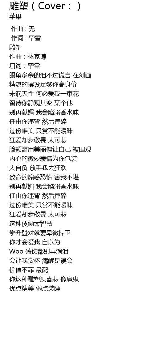 | [02:42.529] | 你这种雕塑没喜悲 像魔鬼 |