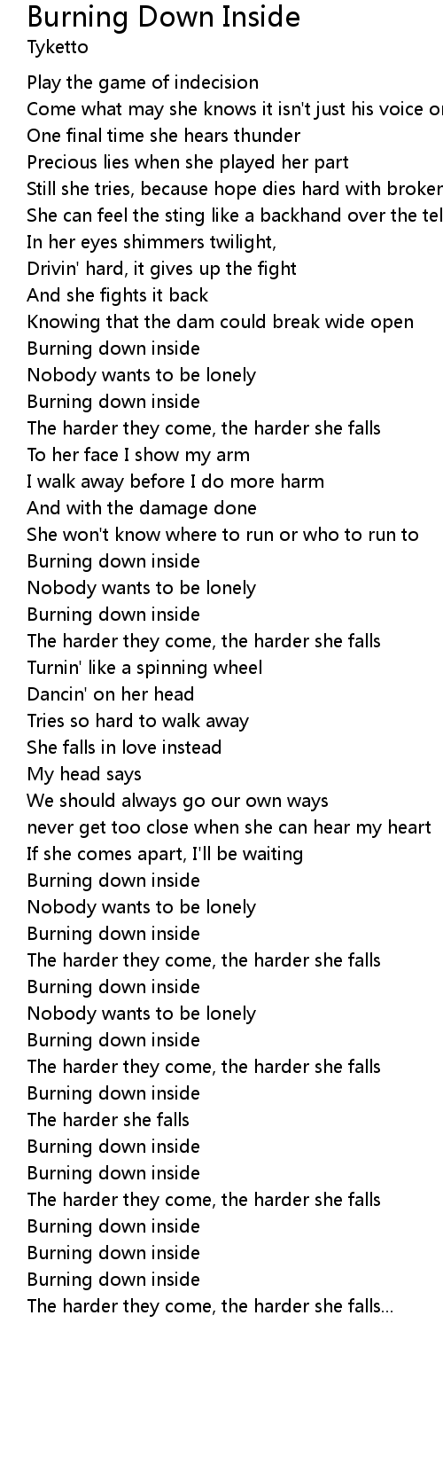 Burning Down Inside Lyrics