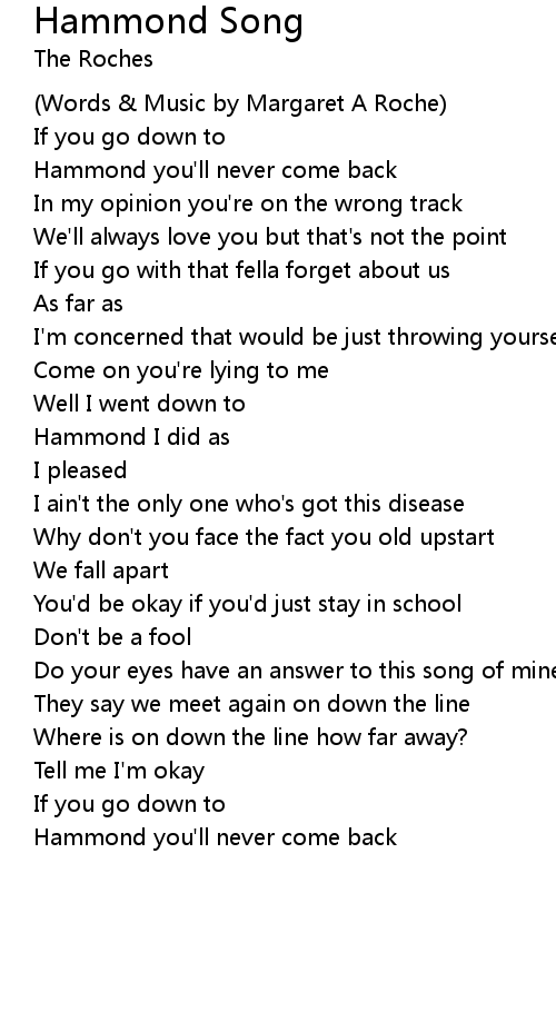 Hammond you'll never come back |