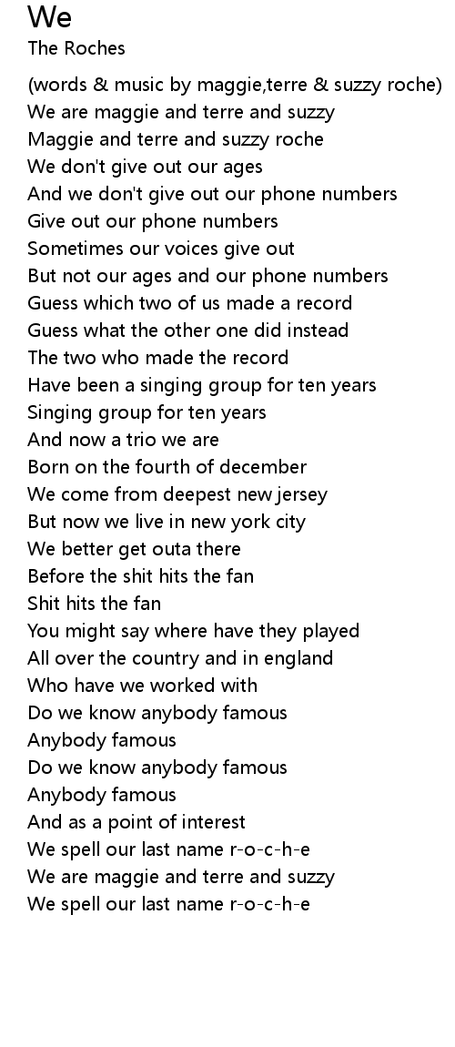 (words & music by maggie,terre & suzzy roche) |