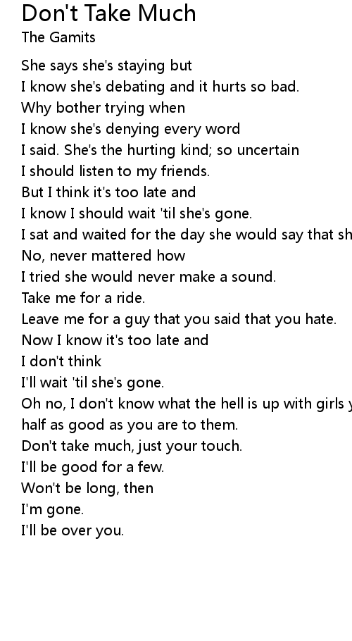 Don't take much, just your touch. |