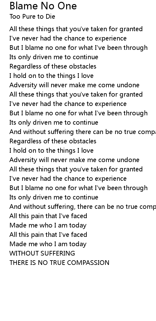 But I blame no one for what I've been through |