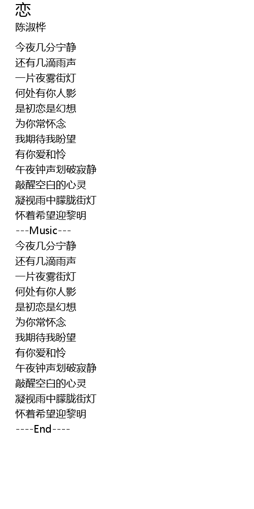 | [00:20.41] | 今夜几分宁静 |
