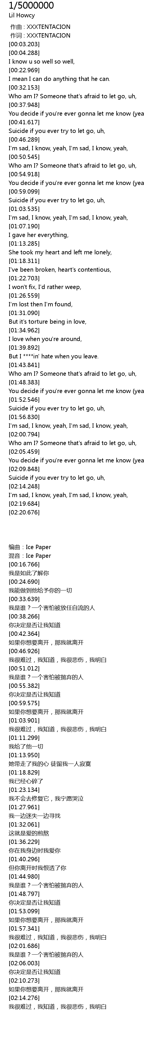 | [00:01.000] | zuo ci : XXXTENTACION |