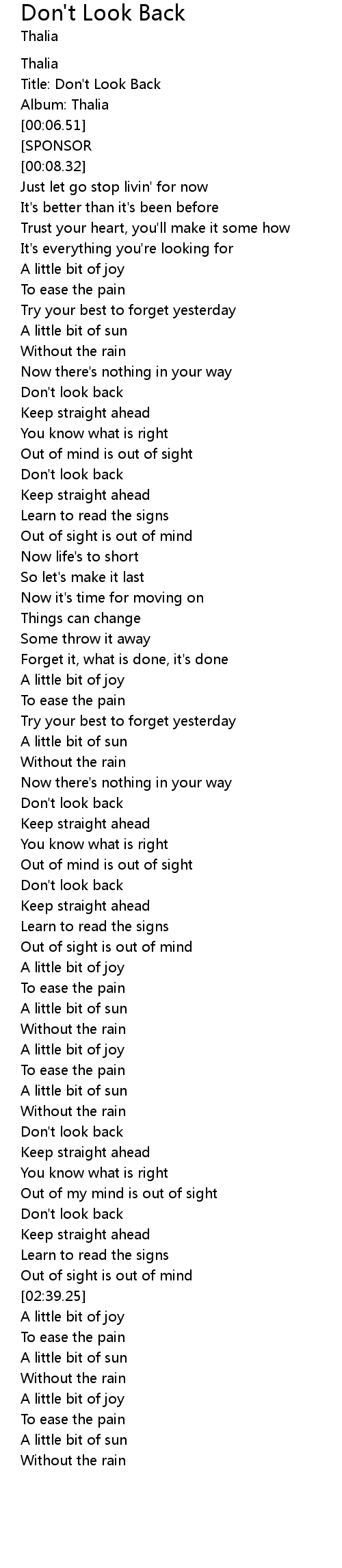 Don't look back |