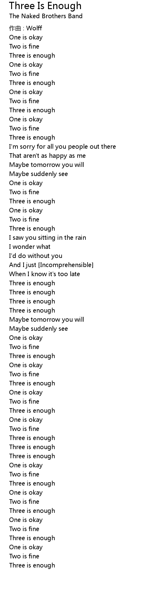 | Song | Three Is Enough |