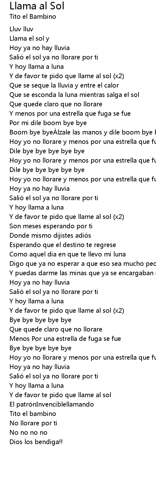 | Y de favor te pido que llame al sol (x2) | |