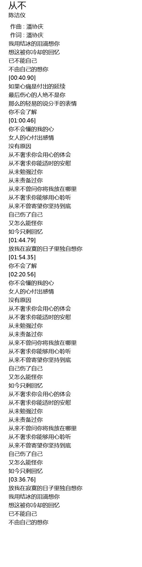 | [02:41.27] | cóng wèi miǎn qiǎng guò nǐ |