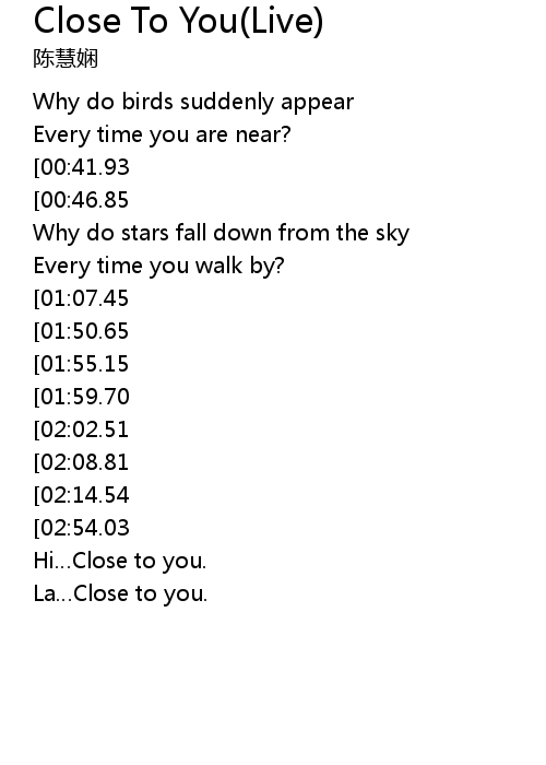 | [02:44.35][02:54.03] | Lai…Close to you. |
