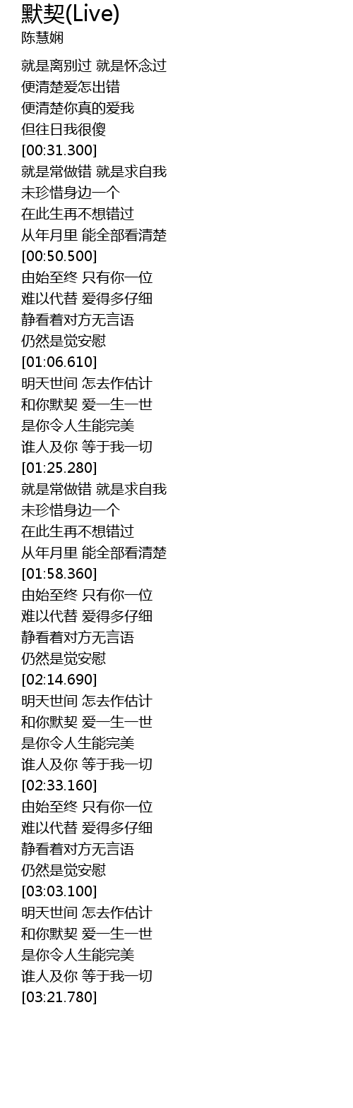 | [03:07.270] | 和你默契 爱一生一世 |
