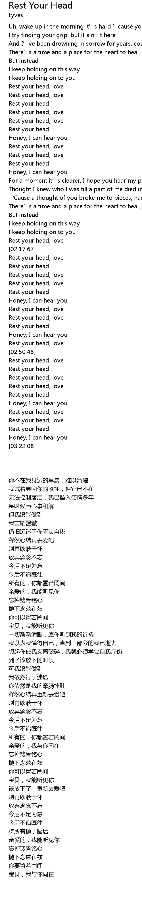 | [03:00.97] | Rest your head |