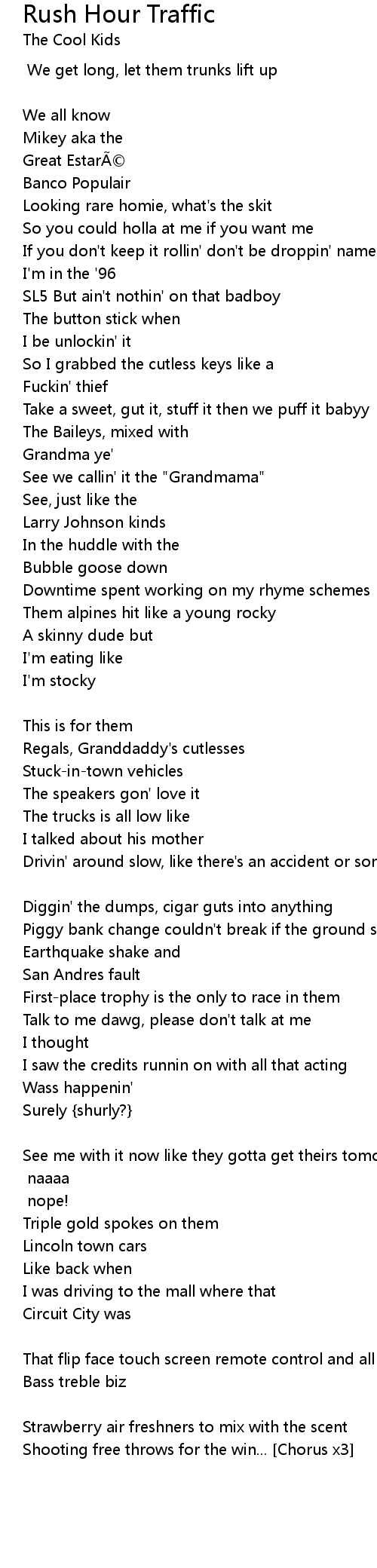 | Song | Rush Hour Traffic |