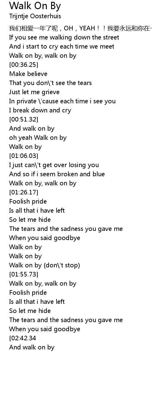 | [01:43.03] | Walk on by |