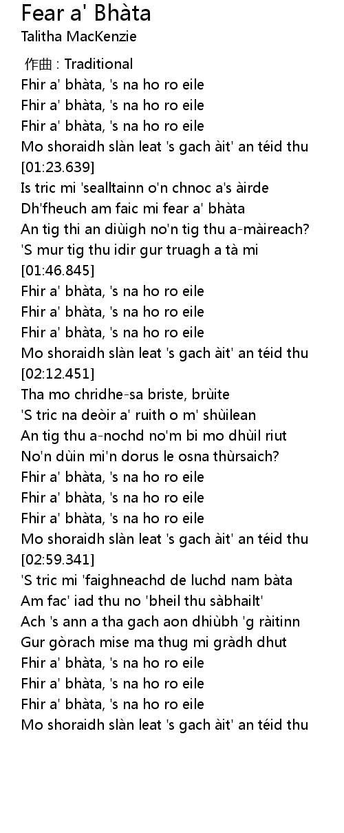 | [02:36.200] | Fhir a' bhà ta, ' s na ho ro eile |
