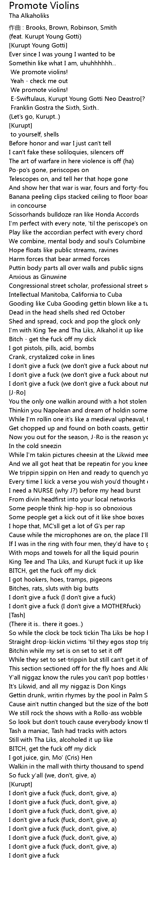 | I don' t give a fuck I don' t give a MOTHERfuck | |