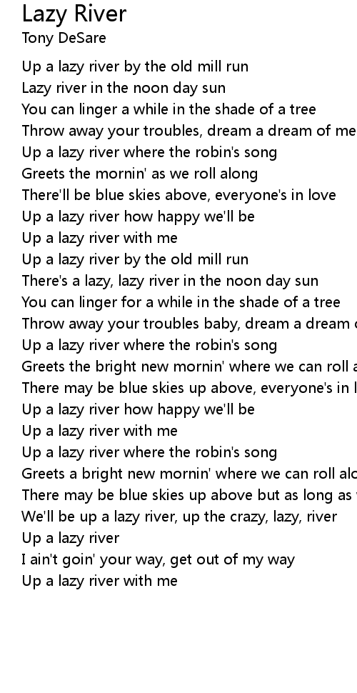 We'll be up a lazy river, up the crazy, lazy, river |