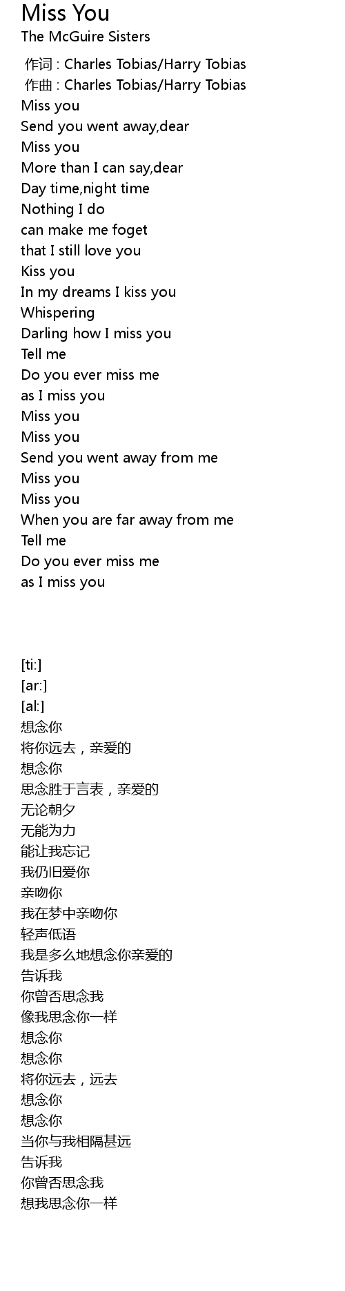 | [00:12.50] | Miss you |