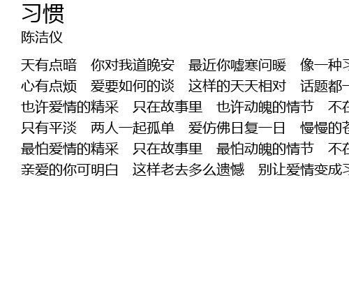 | 天有点暗 你对我道晚安 最近你嘘寒问暖 像一种习惯 | |
