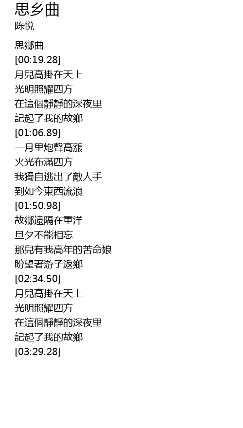 | [00:59.91] | jì qǐ le wǒ de gù xiāng |