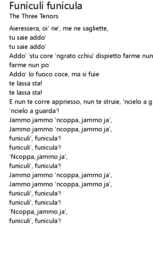 funiculi', funicula'! |