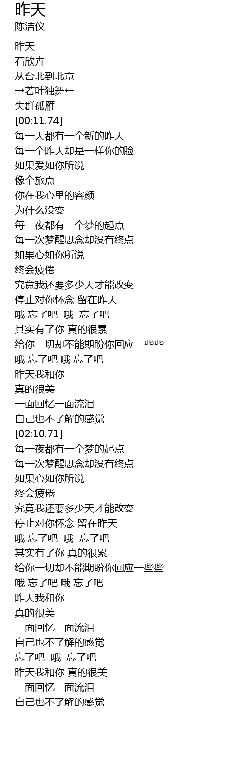 | [02:53.20] | 停止对你怀念 留在昨天 |