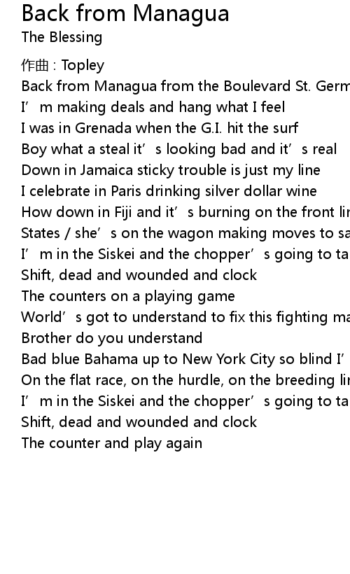 | Bad blue Bahama up to New York City so blind I' m winning | |