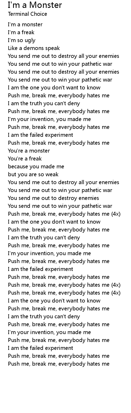 Push me, break me, everybody hates me (4x) |