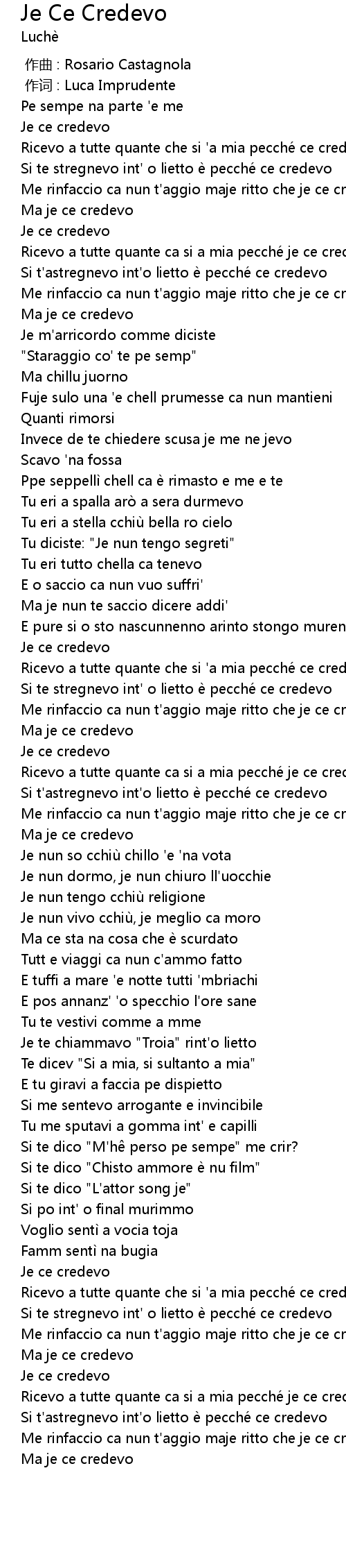 | [02:49.23] | Me rinfaccio ca nun t' aggio maje ritto che je ce credevo |