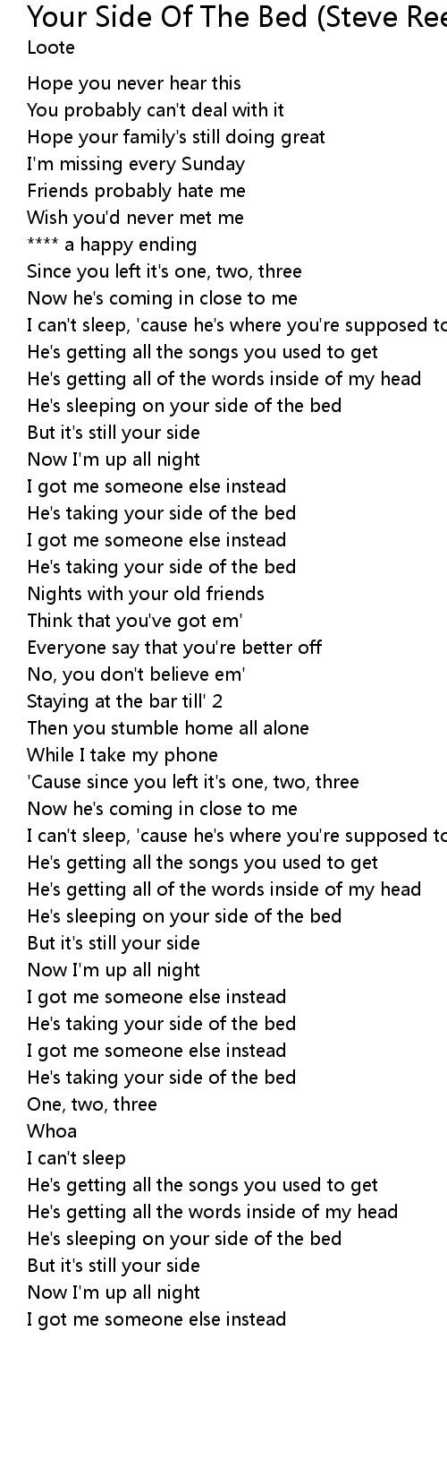 He's taking your side of the bed |