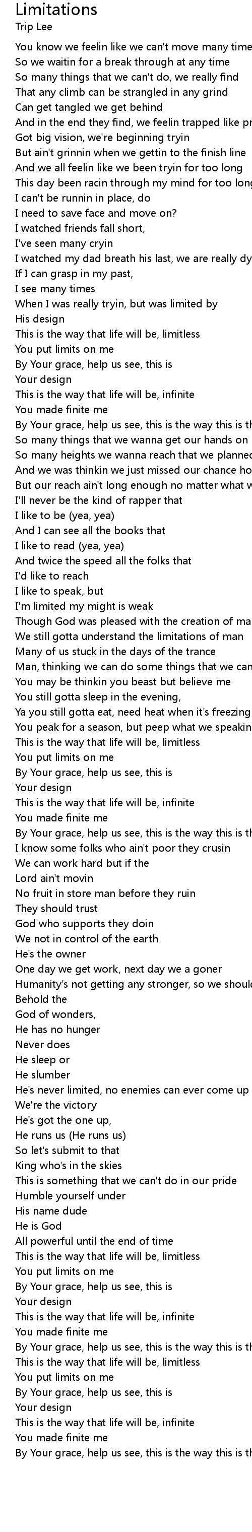 We still gotta understand the limitations of man |