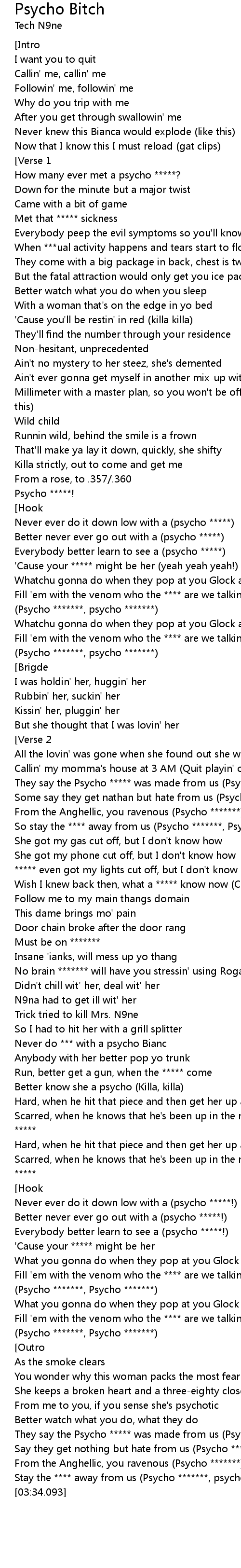 | [01:24.673] | Everybody better learn to see a (psycho *****) |
