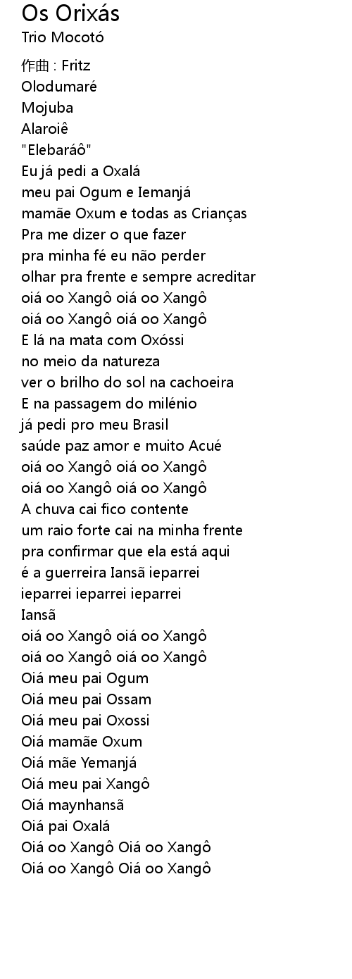 | Song | Os Orixás |