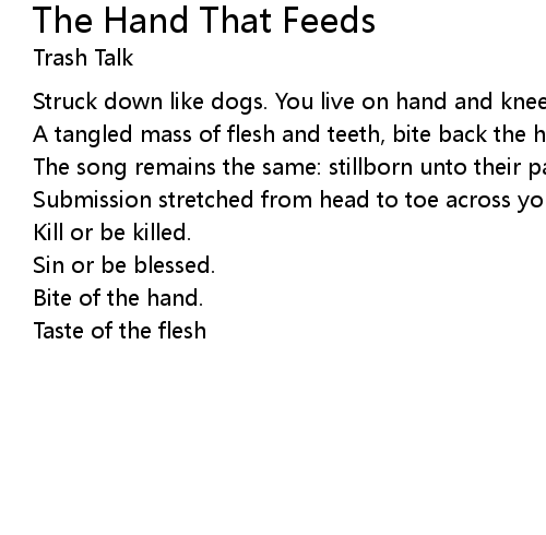| A tangled mass of flesh and teeth, bite back the hand that feeds. | |