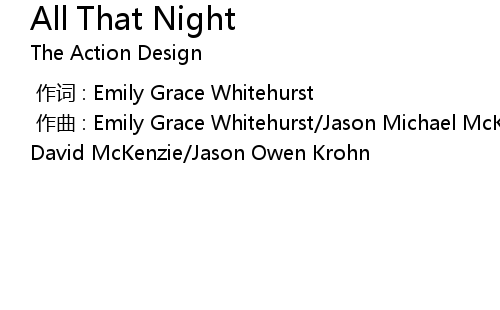 | [00:00.000] | 作曲 : Emily Grace Whitehurst/Jason Michael McKissick/Matthew David McKenzie/Jason Owen Krohn |