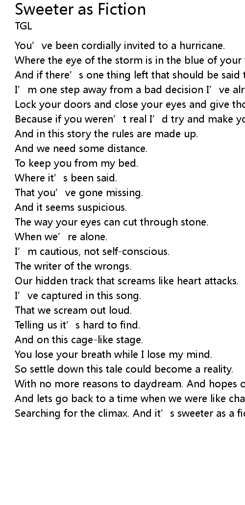 | Song | Sweeter as Fiction |
