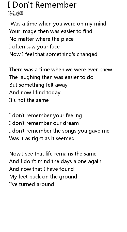 | I don't remember the songs you gave me | |