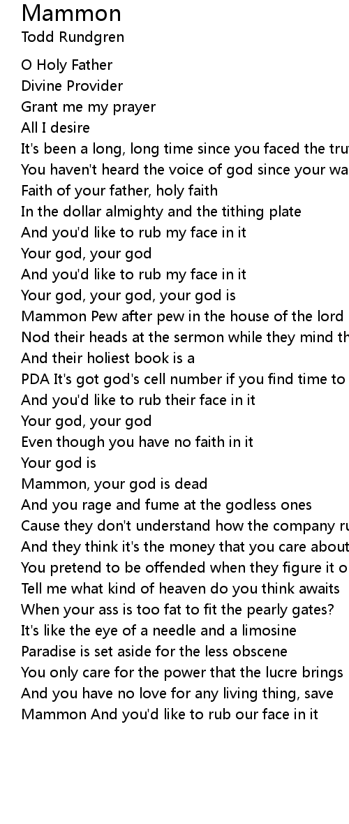 Mammon And you'd like to rub our face in it |