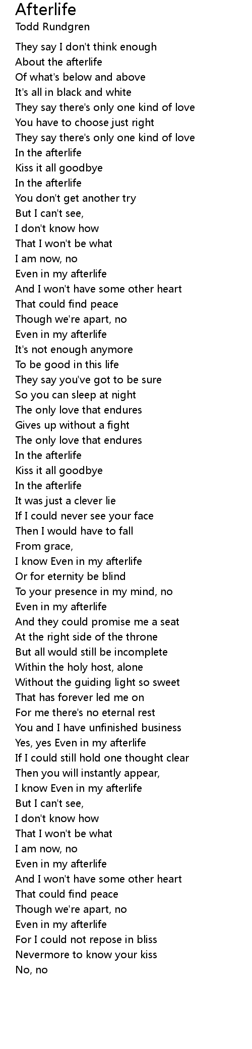 I know Even in my afterlife |