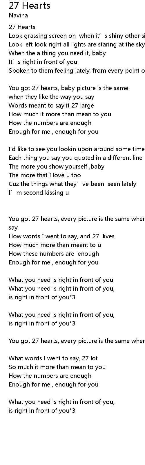 | [00:32] | You got 27 hearts, baby picture is the same |