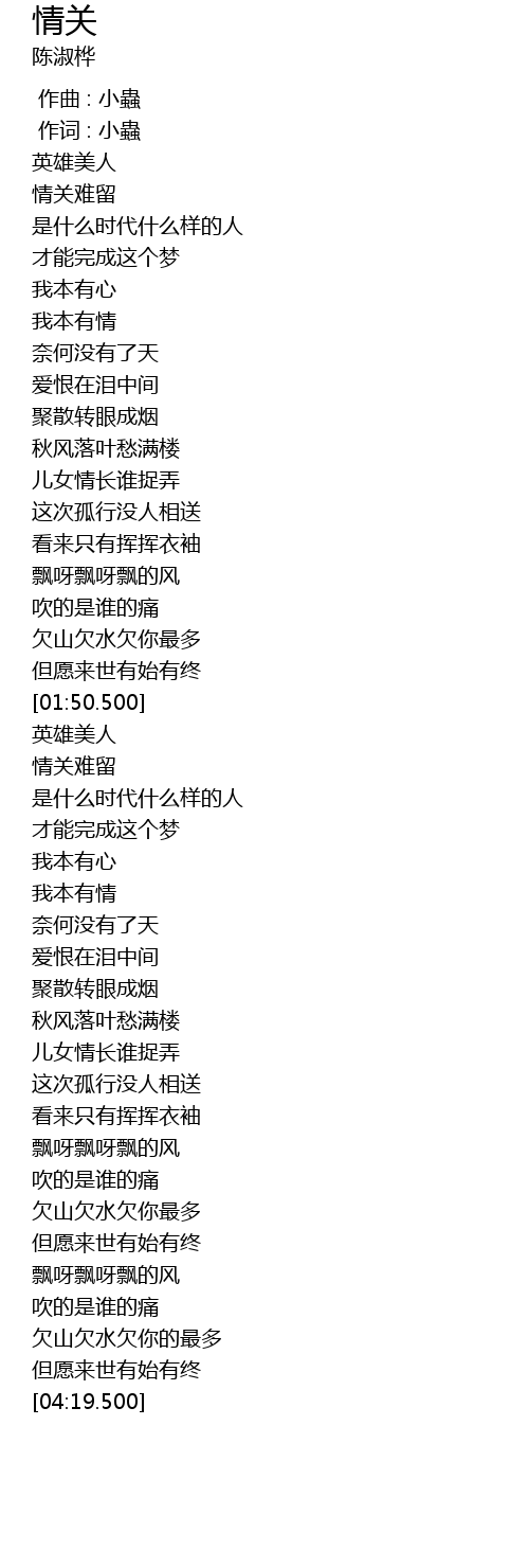 | [00:00.00] | zuò qǔ : xiǎo chóng |