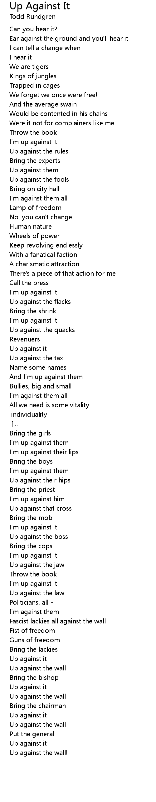 Up against the wall |