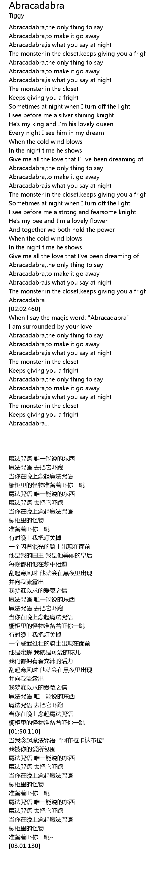 | [02:40.000] | Abracadabra,is what you say at night |