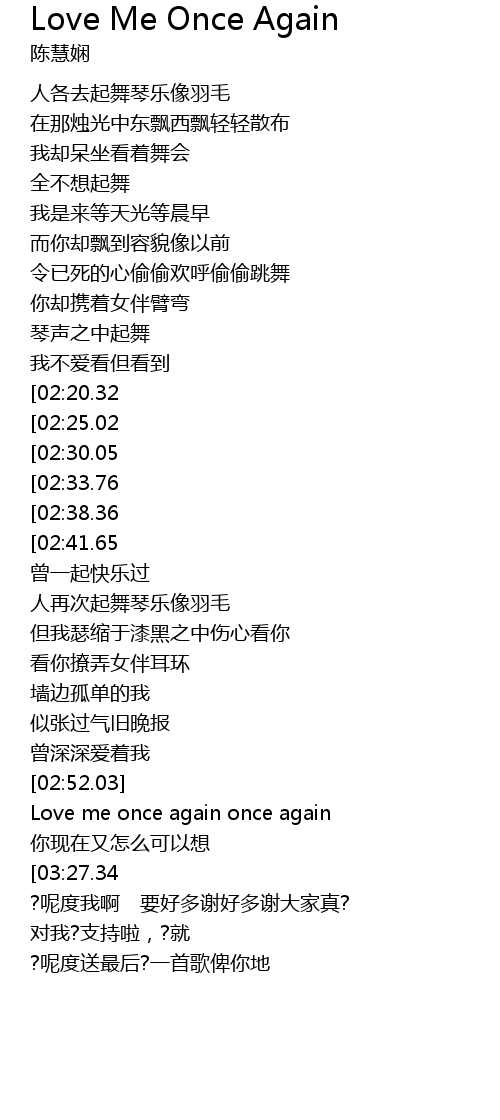 | [01:11.30][02:25.02][02:58.22] | 你我可再做情侣一双 |