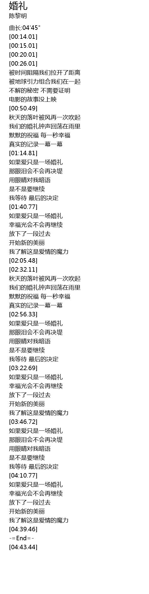 | [03:23.23] | 如果爱只是一场婚礼 |