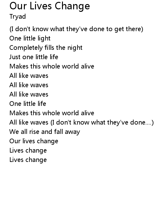 | Song | Our Lives Change |
